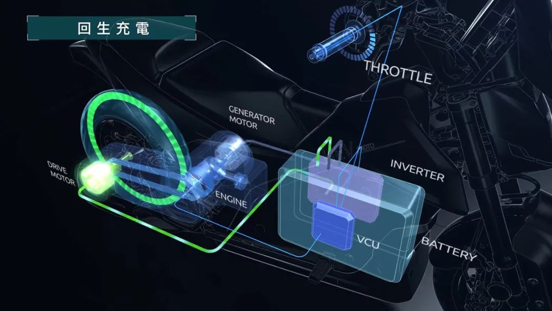 实际上,川崎的混动技术也是差不多,不过雅马哈的SPHEV混动系统还有一个动能回收,回收动能为车辆电池充电,当然你也可以选择直接充电。