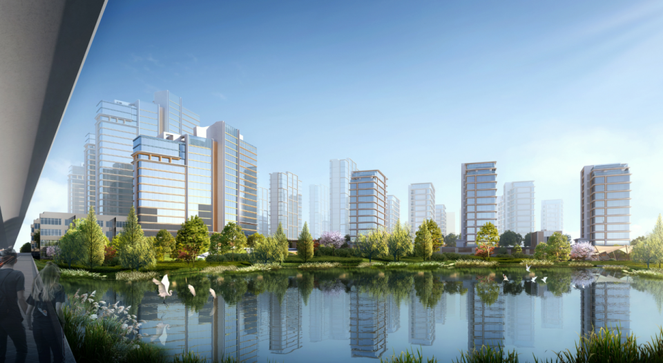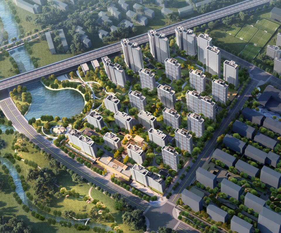 从效果图上看,大高层主要集中在北侧,以及西侧靠近金寨路的位置,西南角则依托十里河打造了一处临水公园。