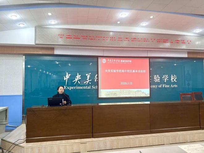 2026年1月14日,中央美术学院附属实验学校高中部召开以“数智赋能教学评一体化 思维引领课堂提质增效”为核心主题的2025-2026学年第一学期教学基本功活动总结会,会议由教务处郝悦斌主任主持。