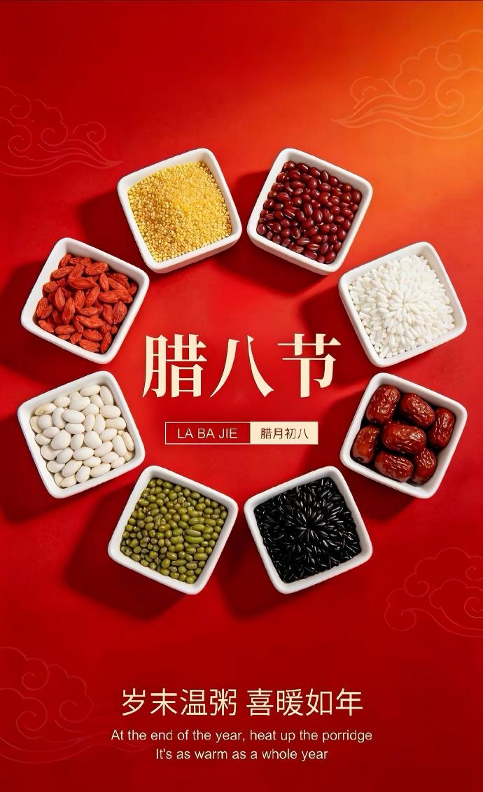 四、寒冬腊月粥香暖,五谷杂粮熬出岁月温情。今日捧一碗热粥敬过往盼新年,愿你有暖可依、有甜可尝,岁岁皆安康,事事皆胜意。