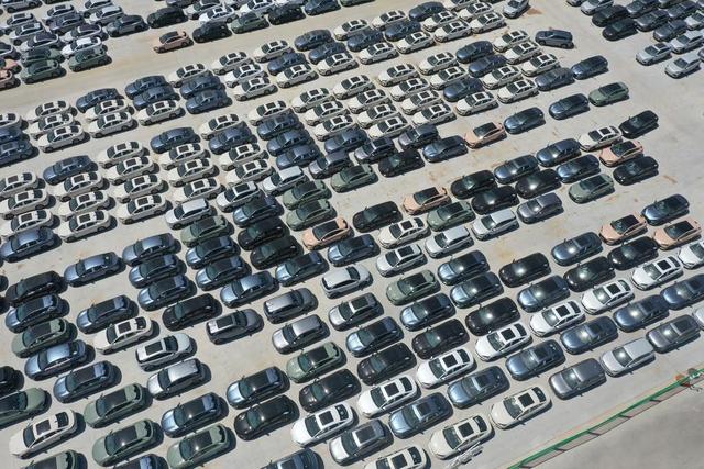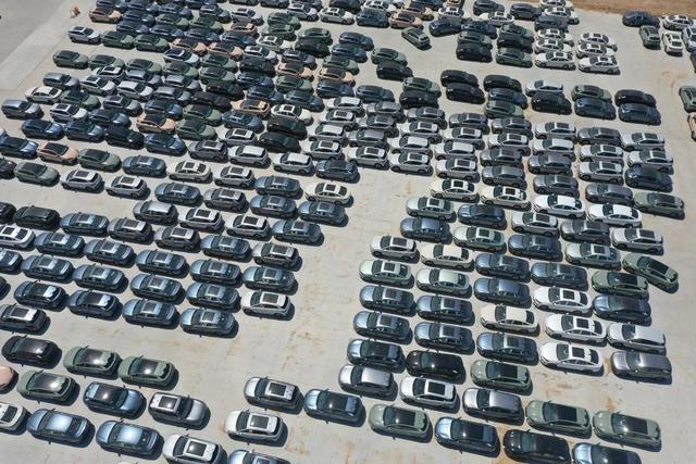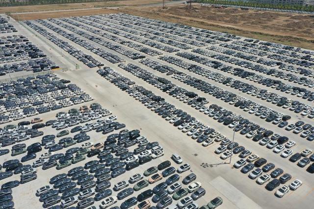 五一假日,济南起步区北部的比亚迪济南基地,大批新生产的汽车停放在厂区东端等待外运,其中部分新车型外形靓丽。