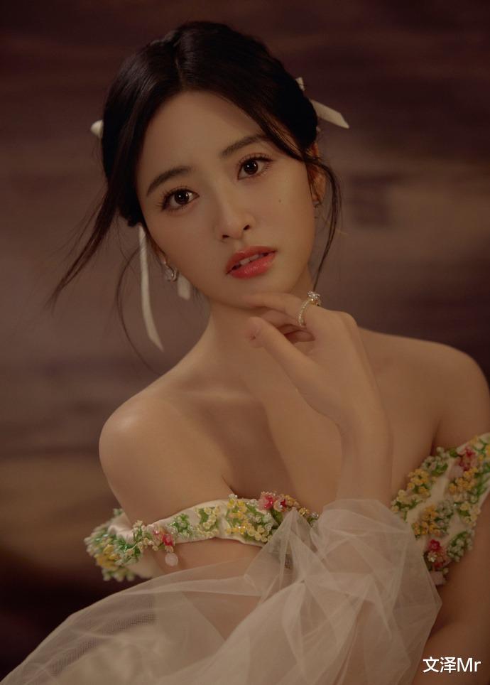 沈月的颜值属于典型的东方甜美系——小巧的瓜子脸,五官精致立体,特别是那双灵动的眼睛,仿佛会说话。身高162cm、体重45kg的娇小身材,并没有限制她的时尚表现力,反而成为她独特风格的加分项。这套造型巧妙地利用露肩设计展现出她优美的肩颈线条,白色纱裙与深色背景形成鲜明对比,让她在视觉上更加突出。