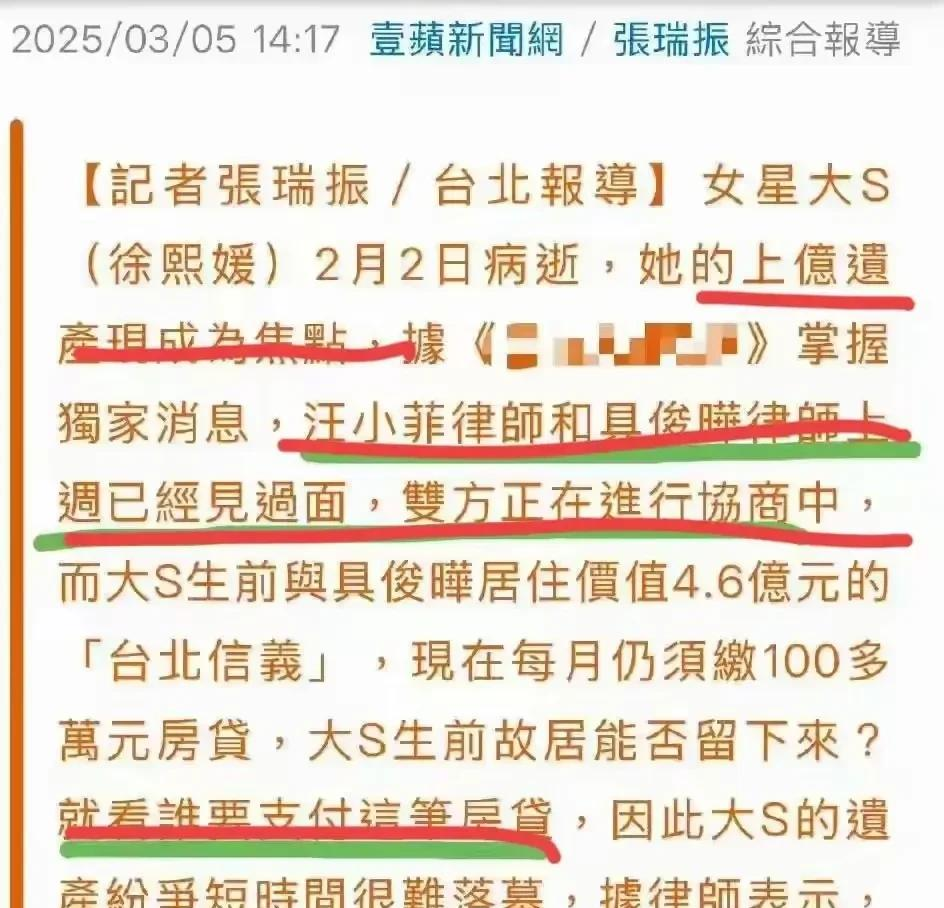 大S去世后,遗产分配迅速成为公众关注的焦点。