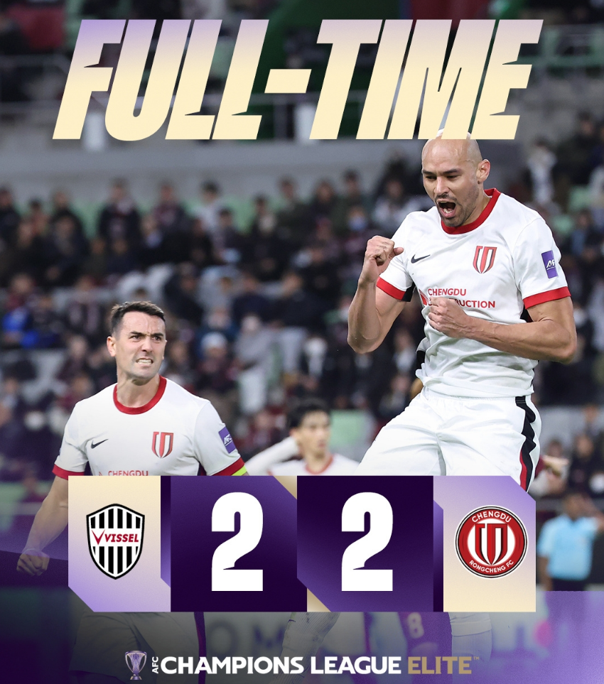 本轮比赛,成都蓉城做客神户大学纪念球场挑战排名第一的神户胜利船,赛前成都蓉城并不被看好,因为此前三场亚冠联赛,成都蓉城只拿到2平1负的不胜战绩。面对东亚区前五轮表现最好的球队,成都蓉城确实没有必胜的把握,但成都蓉城在不被看好的情况下,打出了一场荡气回肠的比赛。