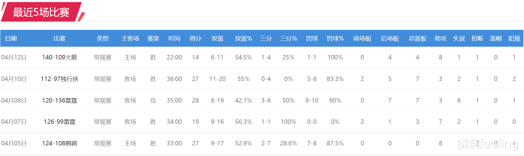 5、最高封盖数:3(2024/11/09 76人 106-116 湖人 、2024/12/07 湖人 132-134 老鹰 、2025/02/23 湖人 123-100 掘金 )