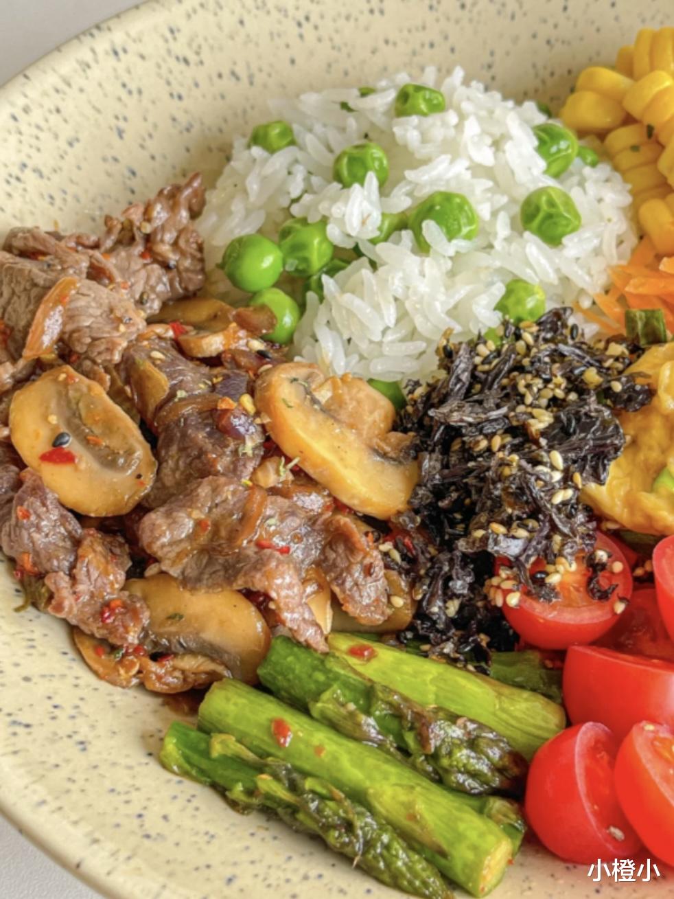 趁热开吃才最过瘾!牛肉嫩滑不柴,蘑菇鲜香多汁,豌豆清甜软糯,三者在少油少盐的烹饪下,反而凸显出食材本身的纯净味道。搭配杂粮饭,一口菜一口饭,既有优质蛋白,又有复合碳水和膳食纤维,营养全面又不会给肠胃负担。吃完整个人神清气爽,完全没有“吃撑”的负罪感,只有被好好喂养的满足。