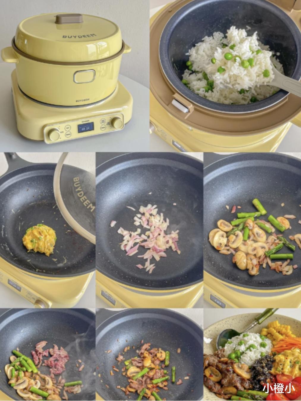 与此同时,电饭煲里的杂粮饭早已焖好——推荐用糙米+藜麦+白米混合煮,口感软糯又有嚼劲,升糖指数低,饱腹感强。把热腾腾的杂粮饭盛入盘中一侧,另一侧铺上刚出锅的牛肉蘑菇豌豆,红棕、翠绿、奶白三色相映,光看就让人食欲大开。
