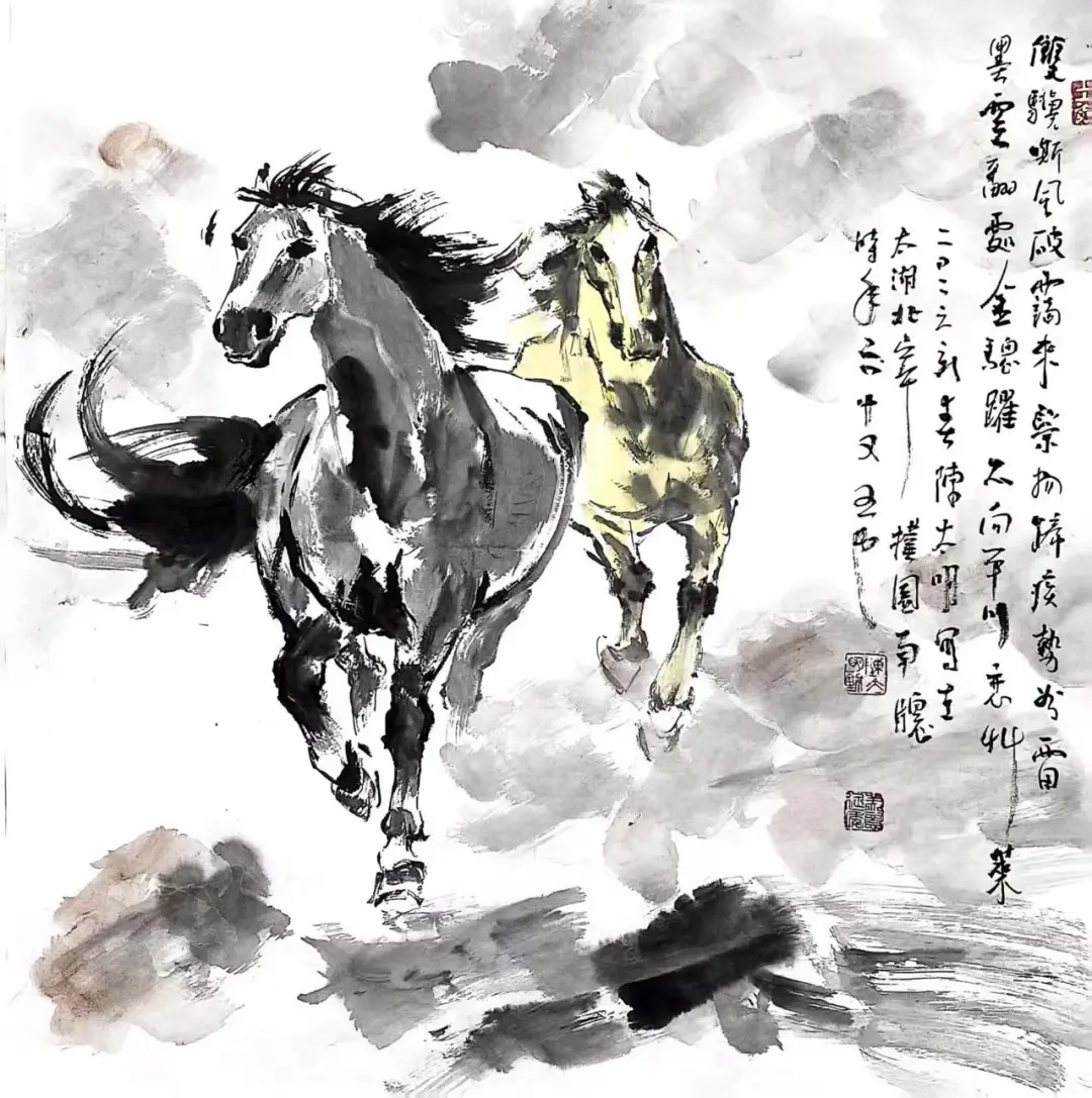 陈太明的画马艺术,是笔墨技巧、造型能力与精神表达的完美融合。他以灵动的笔墨塑造出骏马的形与神,以雄浑的意境传递出生命的力与美,更以深厚的文化底蕴寄于了民族的魂与志。其作品不仅是对传统画马题材的传承与突破,更是当代写意画立足传统、面向时代的生动实践。在未来的艺术创作中,这种“以笔墨铸神,以意象传情”的创作路径,仍将为当代中国画的发展提供持续的启示。