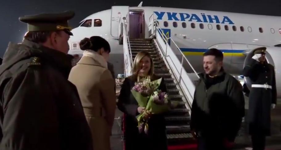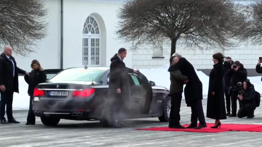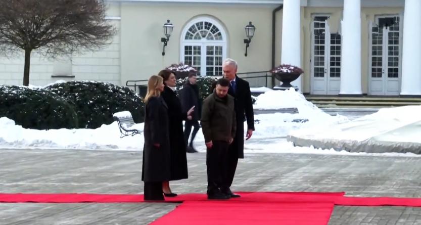 从曝光的画面我们可以看出,当天立陶宛的天气还正下着雪,虽然如此立陶宛还给了泽连斯基和夫人高规格的欢迎仪式,在迎接机场我们可以看出不仅有红毯,还有欢迎人员以及给乌克兰第一夫人送花的两位女士,可以说这个欢迎仪式上在欧洲也算非常高了。从这也能看出立陶宛和乌克兰之间的关系非常好。