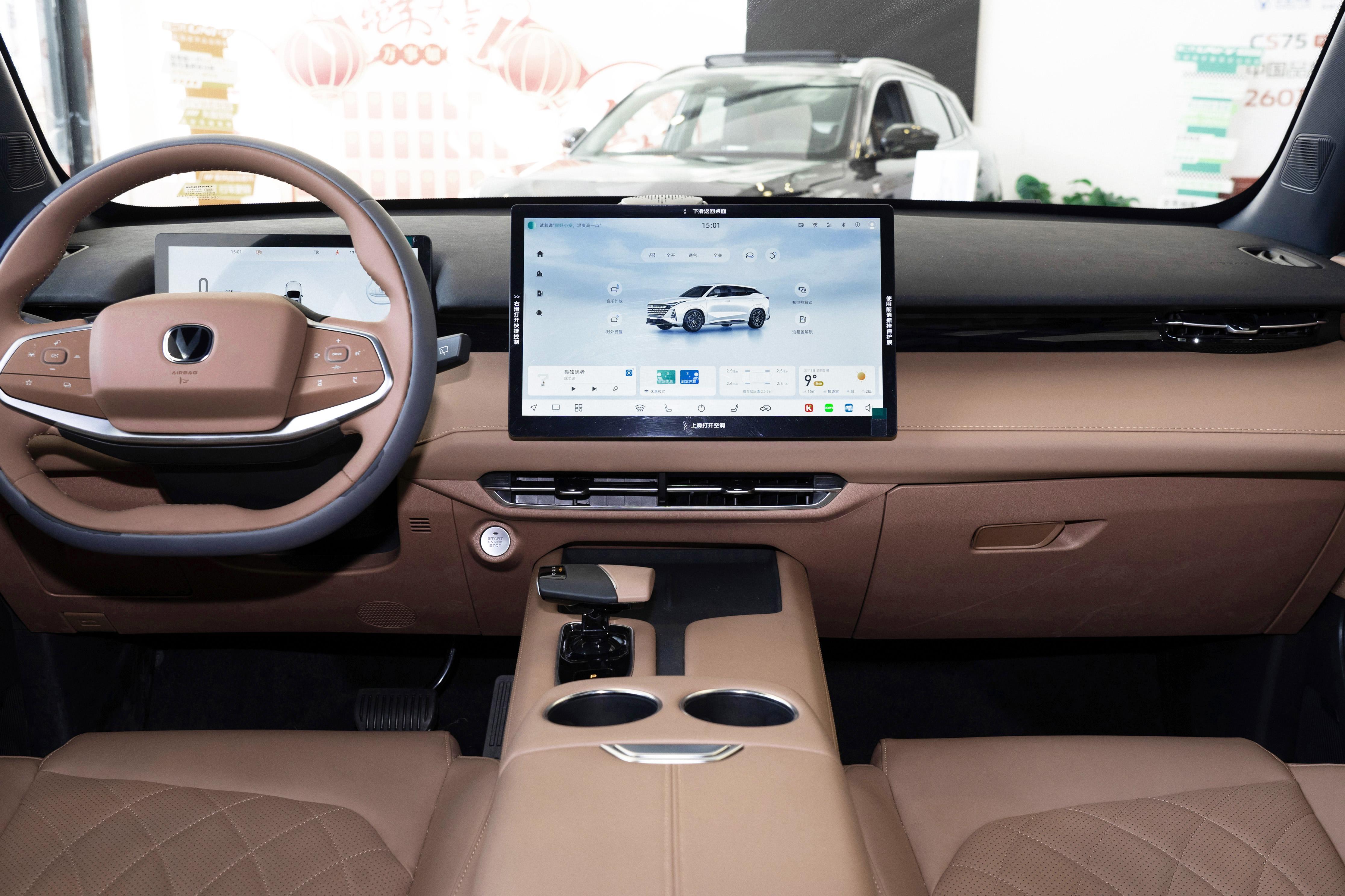 内饰智能化看点:长安UNI-Z PHEV的前排功能区布局遵循主流风格,双幅式多功能方向盘采用平底造型,前端为10.25英寸全液晶仪表盘,中间为悬浮式14.6英寸触控屏,OnStyle车机具备FaceID 3.0人脸识别系统,驾驶员上车即可刷脸自动开机,标配的AI语音助手可实现对空调、导航、车窗、天窗、多媒体等多种功能的语音控制,并支持手势控制和APP下载,我们在家里可以通过手机端APP来远程控车,比如解锁车门、降下车窗、开启空调、查询充电进度等;同时还标配L2级辅助驾驶、哨兵模式、内置行车记录仪和540度全景影像,跑高速可充分发挥全速自适应巡航、车道保持等辅助功能的作用,卓越型增加了语音AI泊车助理和APA自动泊车6.0系统,可在各种停车场完成自动泊车、遥控泊车和记忆泊车。