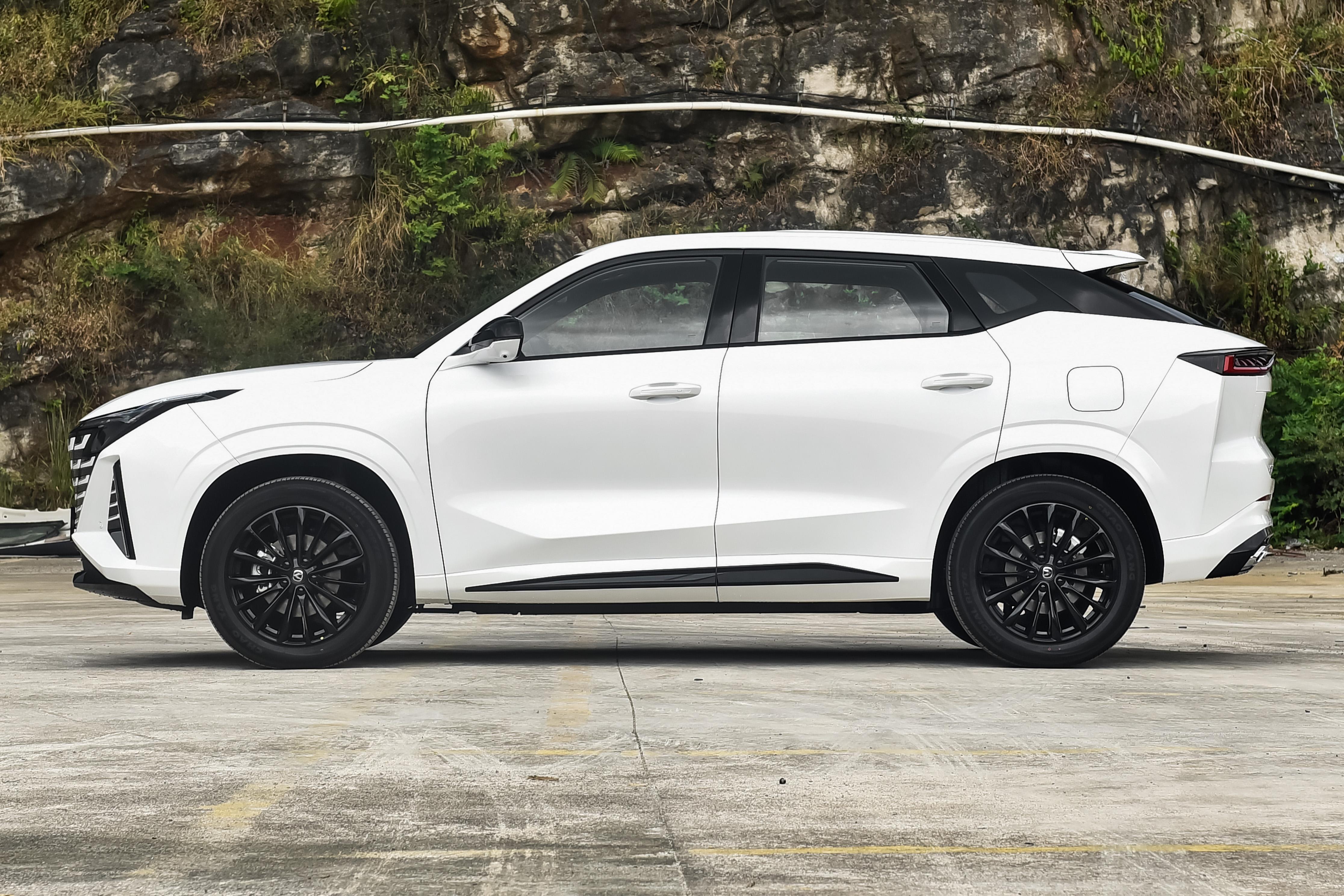 外形设计看点:长安UNI-Z PHEV相比同级竞品确实有自己的特色,X字形前脸采用了点阵式进气格栅和三角通风口装饰,LED灯组与格栅融为一体,黑色前后保险杠配合双出排气、中置雾灯来突出运动气息,225/55宽胎搭配19英寸黑色轮毂。2月份上市的战舰版为银色轮毂,同时将原有银色饰条全部改为黑色饰条/饰片,整车侧身能看到钻石切割的线条,颇有轿跑SUV的味道,贯穿式熏黑尾灯让整个尾部看上去比较高耸,它的长宽高是4730*1890*1660mm,轴距是2795mm,这种风格的外形很容易受到年轻人的喜爱。