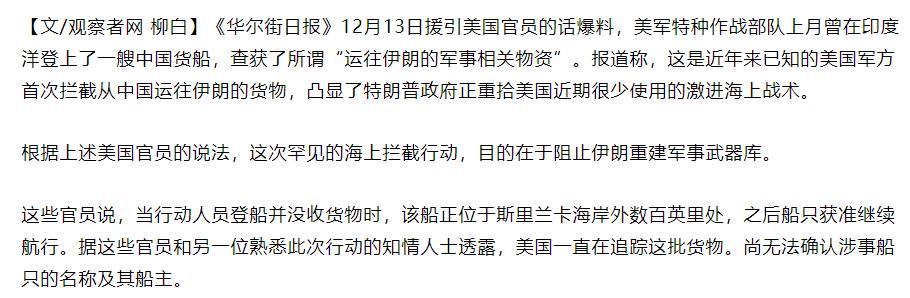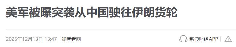 12月13日《华尔街日报》披露,美军早早就锁定这艘货轮,从启航开始就被“持续跟踪”。