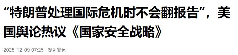 他在当地时间12月4日刚刚签署的新国安战略中提出:美军将力图实现西半球自控,把中东、亚太与欧洲分区让能。