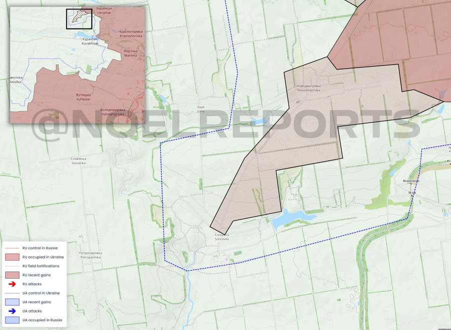 库拉霍夫方向,乌克兰军队情况不妙。俄罗斯人正从北部接近该镇。与此同时,绕道进攻的俄罗斯人已经控制了新德米特里夫卡,并进入了松特西夫卡。