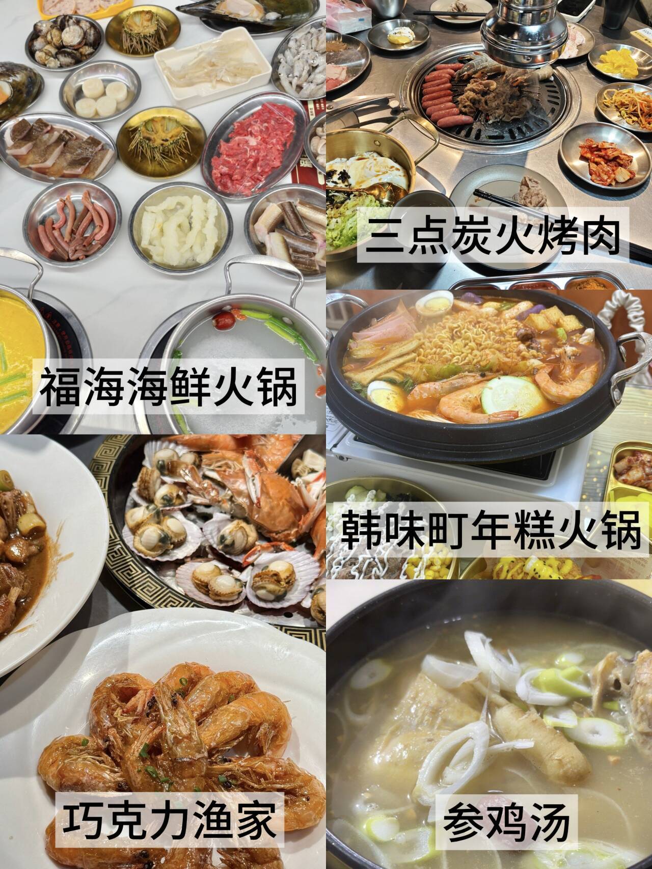 威海的美食😋也太多了,想吃韩餐就可以直接去韩乐坊👌,有好多店都是韩国人开的,特别正宗,还有海鲜🦞,给大家推荐两家我上学🎒经常去吃的,✅一家是巧克力渔家,海鲜都是新鲜现做的,🌬️蒸汽海鲜锅都是在你面前蒸熟的,再配上酱料,特别鲜美,✅还有一家是福海海鲜自选火锅🍲,有超多种类海鲜和肉类🥩,想吃啥就吃啥,特别新鲜💦,不同颜色盘子的💰也不一样