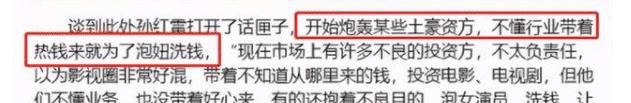 于是现在市面上比较流行的说法,是她和一个叫“路征”的人关系匪浅,因为韩寒也在辱骂《战国》的时候说,大家都要照顾制片人的女人,而这个制片人就是路征。