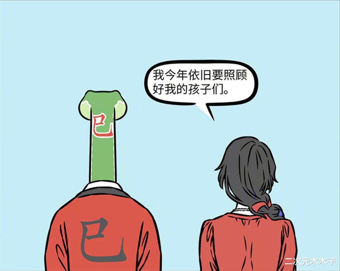 在上一话故事中,我们迎来蛇年的守护神巳蛇,与此同时人首蛇身的女娲娘娘也登场,而在本话故事中,巳蛇、女娲娘娘一同给大家新年祝福