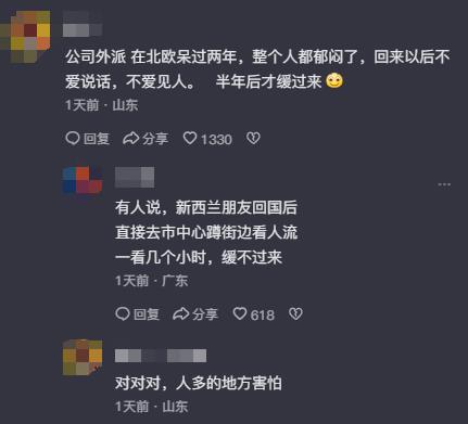 还有网友表示,在北欧待了两年之后,整个人都快抑郁了,回国后变得不爱说话也不喜欢见人,半年后才缓过劲来。