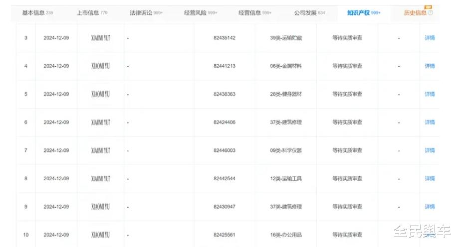 近日,根据天眼查知识产权的信息,小米科技有限责任公司已经申请注册了多枚“XIAOMI YU7”和“XIAOMI YU”商标,这些商标的国际分类覆盖了运输贮藏、运输工具、科学仪器等领域,目前这些商标的状态均为等待实质审查。