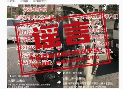 河南漯河“无单位人员可缴职工社保”漯河市人社局严正声明:灵活就业人员参保政策未作调整,网传所谓“政策突破”图文系伪造政务平台页面,经数字水印检测发现篡改痕迹。