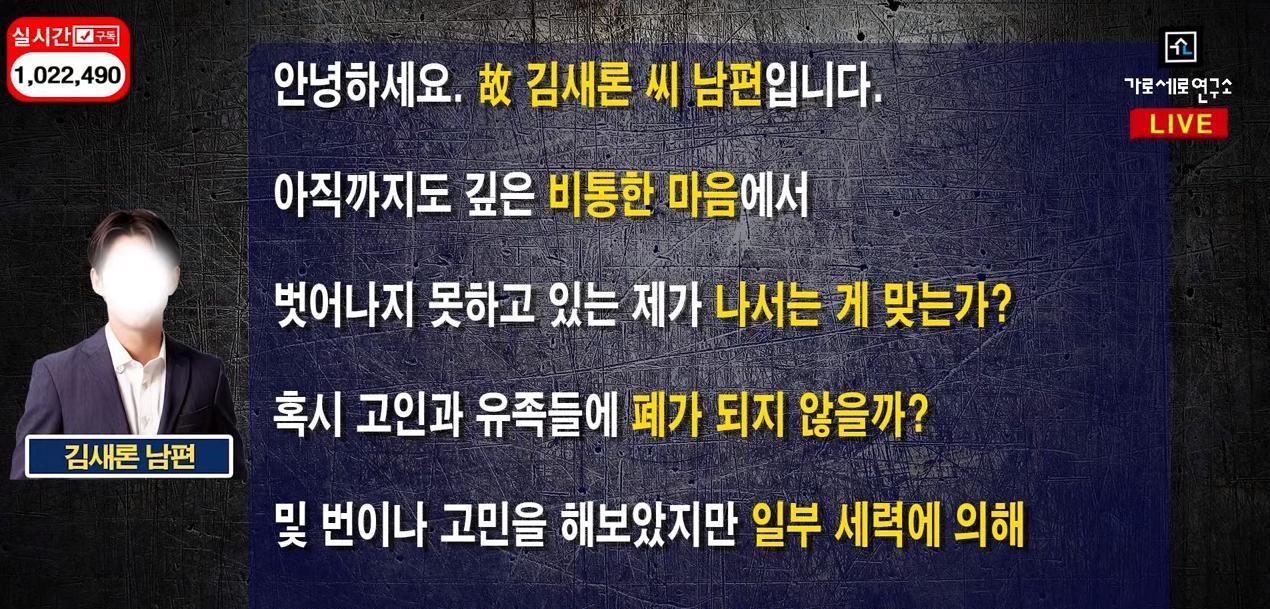 他声称,妻子生前长期遭受金秀贤和李镇浩的精神折磨,这才是导致她最终走上绝路的真正原因。