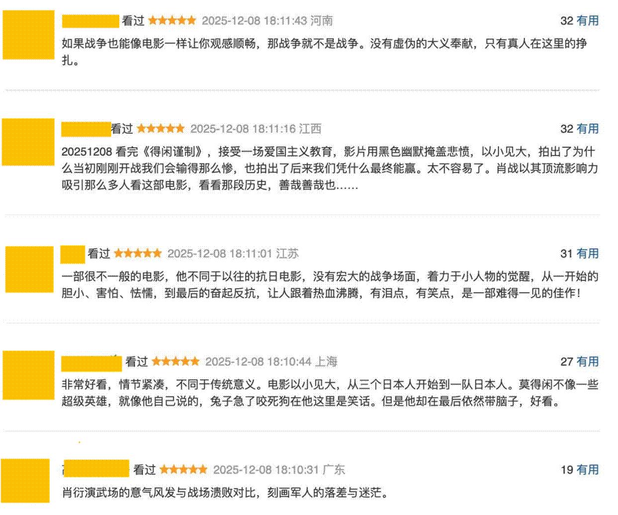 更难得的是口碑爆棚,观众清一色好评,有人冲着主创团队而来,有人被小人物的抗战故事打动,而更多人直呼被尹正的突破性表演惊掉下巴,不少网友认可肖战的蜕变,就连配角尹正也在电影中交出了让观众一时没认出来的换脸式演技。