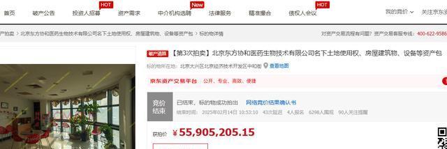 2月14日,京东拍卖平台上出现了一宗北京市与破产公司相关的资产拍卖事宜。此次被打包拍卖的资产包涵盖了已破产的北京东方协和医药生物技术有限公司名下的土地使用权、房屋建筑物以及设备等。据相关资料表明,北京东方协和医药生物技术有限公司属于港资企业,于2001年成立,不过现已破产。