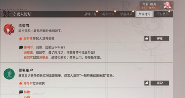 游戏还沿用了龙族中“守夜人论坛”的设定,让玩家能够在此系统中和其他角色进行互动,进一步了解角色的日常生活,感受龙族中的青春热血的学园氛围。