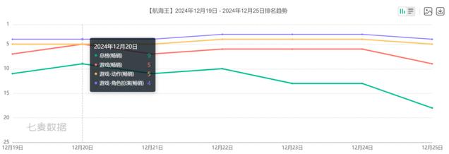 腾讯魔方工作室研发的《航海王:壮志雄心》全平台预约人数超2400万,游戏上线后首周稳居苹果AppStore畅销榜前10,最高获得第5名。