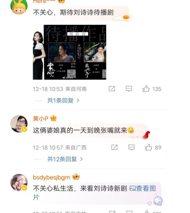 还有不少粉丝直接说不关心姐姐私生活,并向吃瓜网友安利刘诗诗的作品。