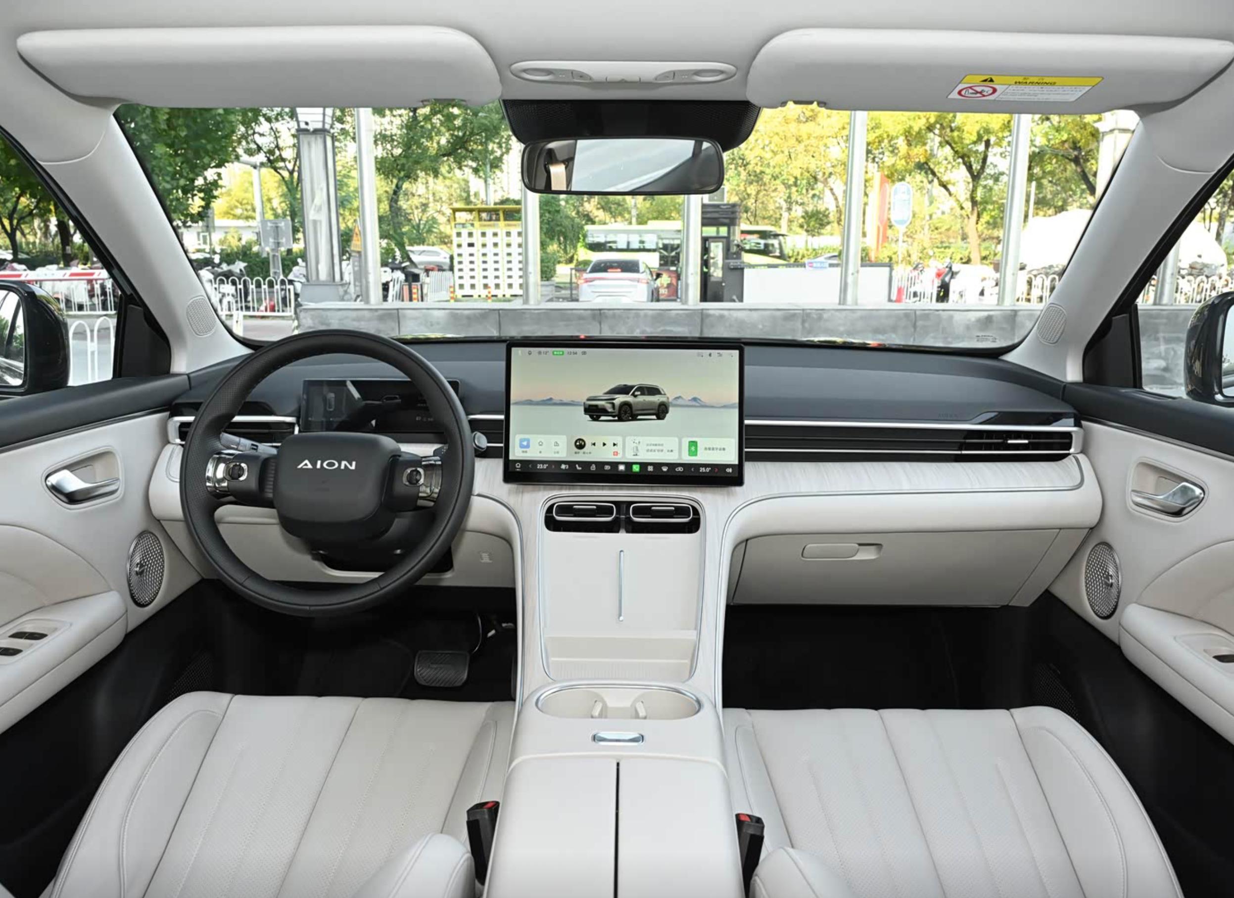 在车身D柱位置会有身份标签,增程动力为REEV,纯电动力为EV,在车尾双线贯穿式尾灯中央增程版为广汽LOGO,纯电版则为AION字母标。