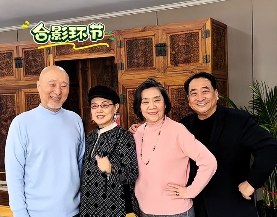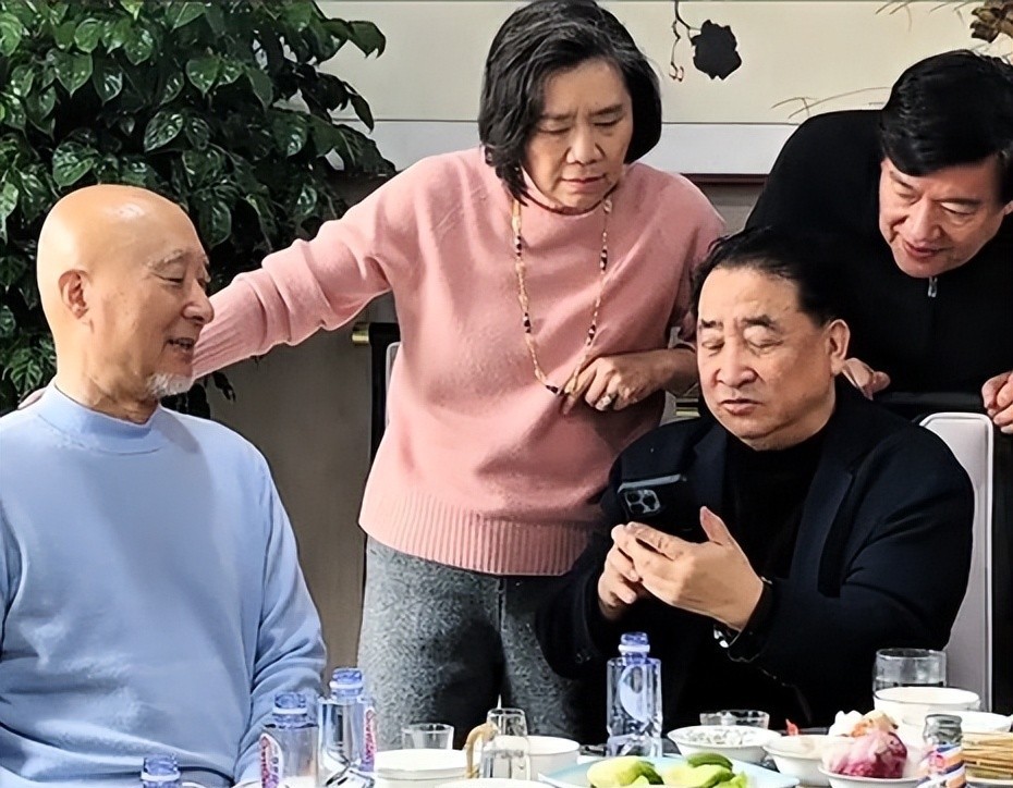 有趣的是,姜昆和殷秀梅也有着很深的渊源。据说当年姜昆力劝殷秀梅加入广播艺术团,才成就了这位歌唱家的辉煌事业。照片中,朱时茂稳坐C位,也彰显着他在圈内的地位和影响力。老朋友们聚在一起,谈笑风生,回忆往昔,气氛轻松愉快。