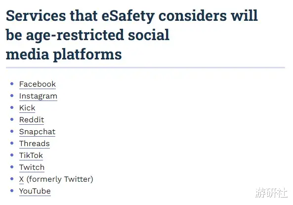 这项号称“史上最严、全球首例”的禁令于12月10日正式生效,最令人瞩目的,便是禁止所有16岁以下的未成年人都拥有或维持社交媒体账号。澳洲网络安全部(E-Safety Commissioner)公开的首批受限的名单中,禁令几乎囊括了欧美年轻人使用的全部主流社交媒体,包括TikTok、X和Instagram在内。