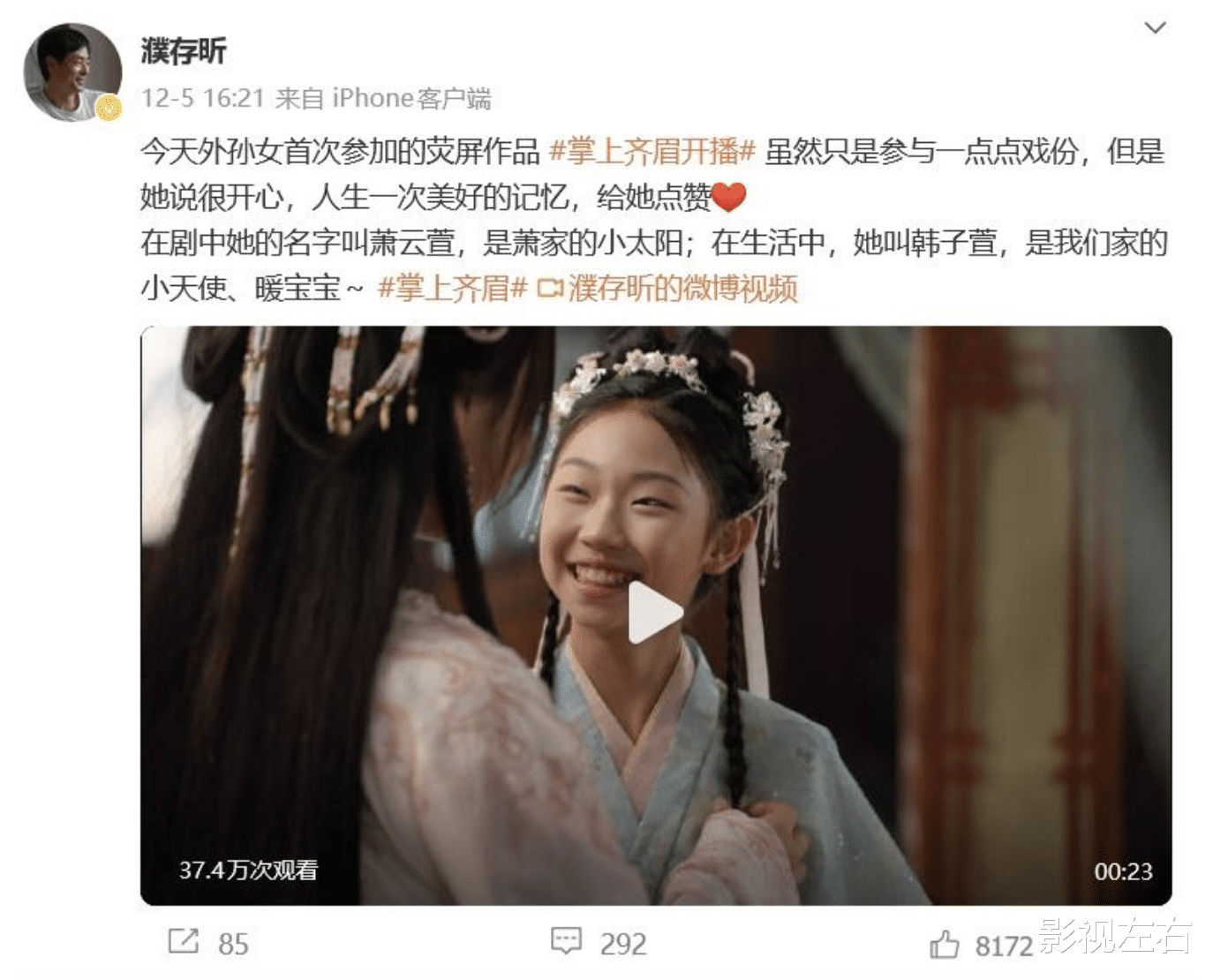 言归正传,没看濮存昕外孙女参演的这部短剧,不清楚她剧中的角色、戏份、呈现效果,对这些不做评价。