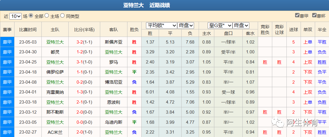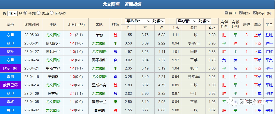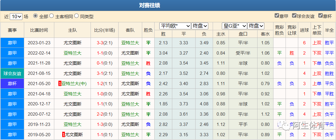 今天给大家带来一场赛事:亚特兰大VS尤文图斯