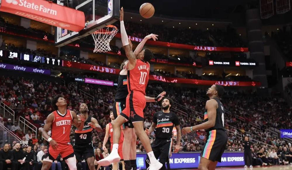一开场马刺外线神准,三分球一度投出了67%的命中率,在比分上迅速取得了两位数的领先优势。上一场比赛意外受伤的亚当斯缺阵对火箭的前场篮板球影响也很大,再加上马刺拥有文班亚马这样的天赋型超巨,首节他们在前场篮板的拼抢方面也完全处于下风。