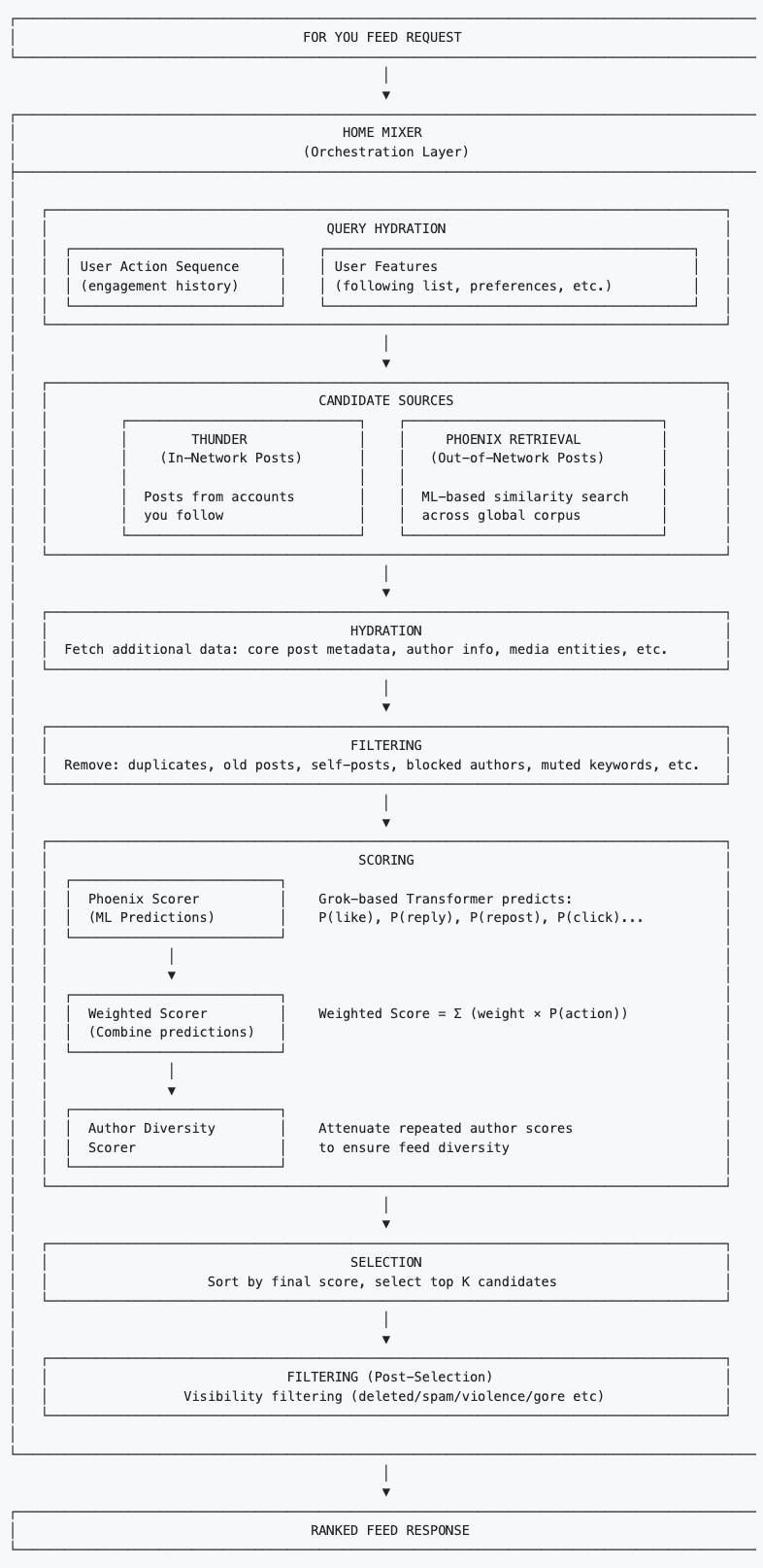 Github 开源链接:https://github.com/xai-org/x-algorithm 这份代码仓库包含了 平台「For You」信息流背后的核心推荐系统。