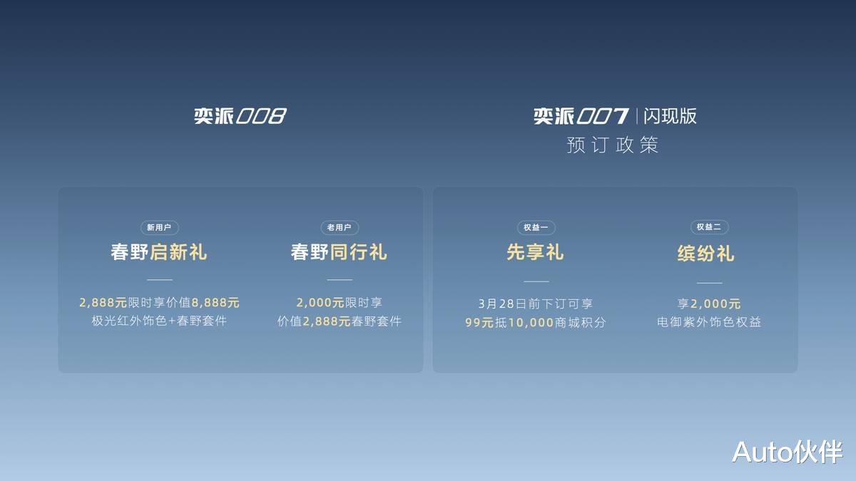 适配家庭百变出行场景的“大舒适家”奕派008,始终致力满足中国主流家庭对高品质出行的多元想象,正式推出用户共创全新车色——“极光红”。新车色以红色极光为灵感,经过多次车漆调校,兼具奢雅通透的视觉质感与升级耐磨的漆面工艺,实现美学与品质双重进阶。为进一步提升家庭出行的舒适与便捷,奕派 008 推出涵盖车顶横杆行李架、固定侧踏板、放电插排三大核心配置的“春野套件”,并同步释放双重限时购车权益:新用户下订极光红外饰色绑定春野套件限时先享价2888元;老用户可在APP下订春野套件,限时回馈价2000元,助力用户轻松开启春日美好出行。