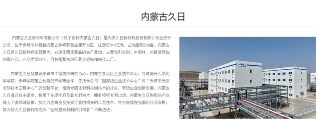 日前,内蒙古自治区赤峰市生态环境局发布了内蒙古久日新材料有限公司项目环评受理公示,标志着项目推进速度加快。此次公示的项目为:年产9250吨系列光引发剂及中间体项目 /二车间BP生产线改建项目、年产9250吨系列光引发剂及中间体项目 /819-1及副产亚磷酸装置改扩建项目。