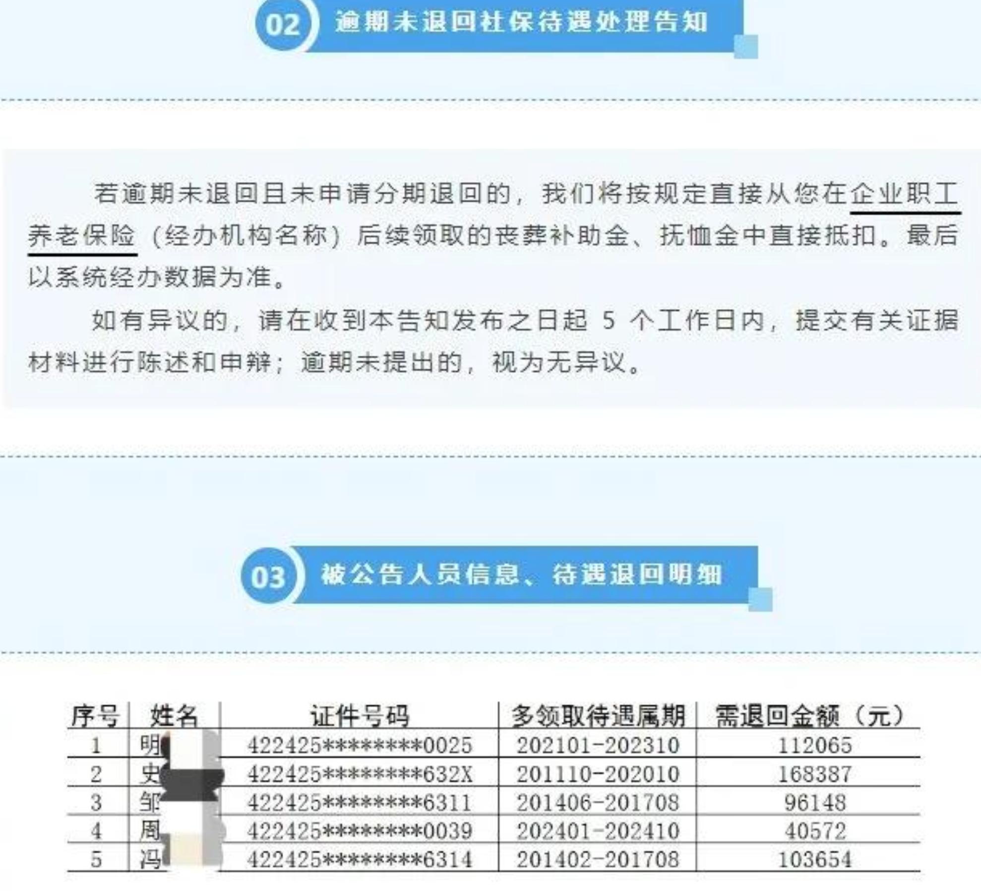公告明确指出,对于冒领的养老保险待遇,要求冒领者按期退回,如果逾期不退,将通过扣除丧葬补助金和抚恤金的方式追回。此外,公告还提出,如果一次性退还存在困难,可以协商分期退还。这样的措辞引发了广泛争议,不少网友质疑,为何对于违法行为还能“通融”。