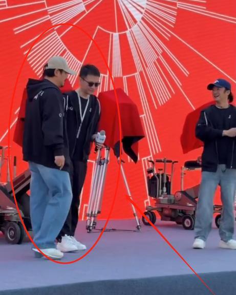 他穿着黑色休闲服,戴着蓝色帽子,径直走向舞台边缘,没有丝毫抢占C位的意图。