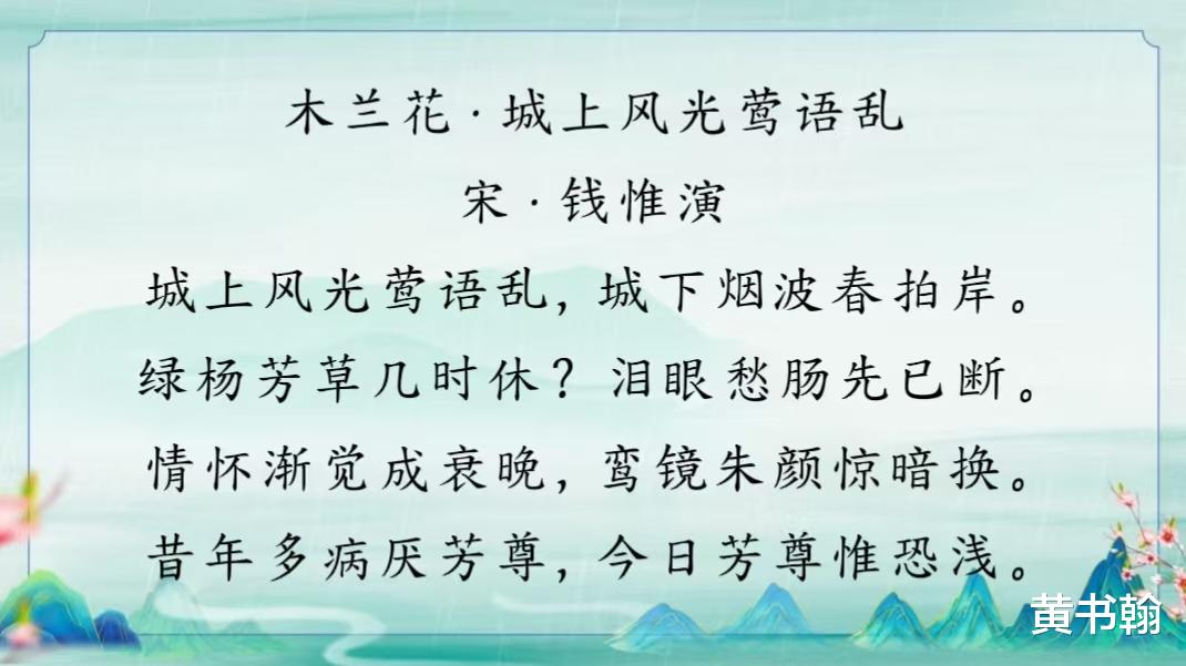 北宋时期,词坛更是呈现出百花齐放的繁荣景象。豪放派的苏轼、辛弃疾以磅礴的气势书写家国情怀;婉约派的柳永、李清照则以细腻的笔触描绘细腻情感。在众多词人中,钱惟演或许并非最为耀眼的名字,但他的《木兰花·城上风光莺语乱》却以其别具一格的艺术魅力和深沉的情感表达,赢得了后人的赞誉。