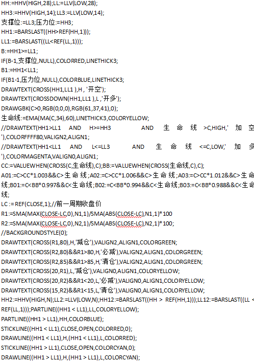 1. 长短周期嵌套机制:采用28日唐奇安通道与14日即时通道双轨制,通过BARSLAST函数动态比较高低点突破时差,精准捕捉趋势转向信号
