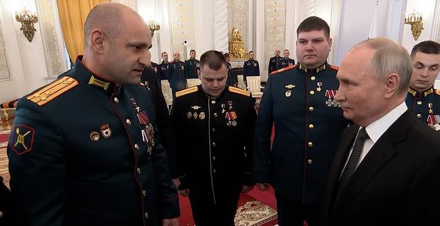 大会上出现了很多士兵的影子,他们都是从俄乌冲突的战场上回来的。