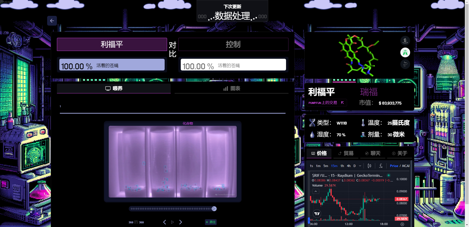 目前,有两种化合物正在 Pump.Science 上进行测试。第一种是$RIF,代表化合物利福平,$URO代表化合物尿石素 A。当用户点击其网站上的其中一种化合物时,他们将能够看到更新的实验数据和代币的市场趋势,从而让用户做出决策并预测该化合物的未来。以 $RIF 为例,目前正在评估其预防苍蝇复发的能力。代币 $RIF 是正在进行的科学实验的代币化表示,其假设是利福平可以帮助长寿。
