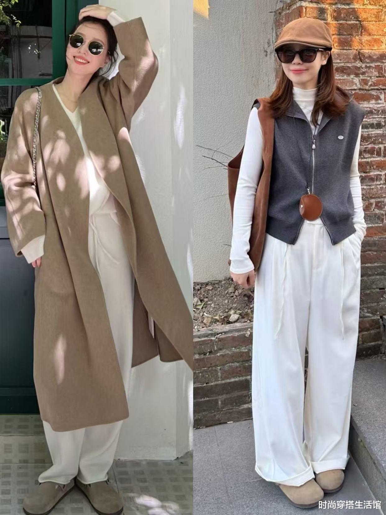对于微胖或者腿型不直的女性来说我们选择裤子通常都是宽松版型,主要是因为阔腿裤才能更好的遮肉显瘦,从而让穿搭凸显出随性慵懒的气质,选择和勃肯鞋进行搭配的时候可以选择九分或者露出鞋面的长度,能够让我们的整体造型塑造出漫不经心的松弛感,同时还符合当下的时尚潮流,赢得不费力的时髦。
