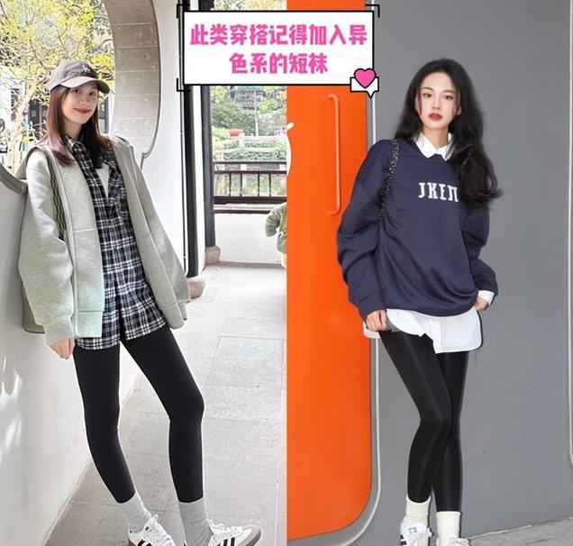 而如果你下半身选择的是像短裙或者短裤这样的单品系列,那么就建议各位女性可以优选加入一些短袜的元素,将脚踝的部位进行分割,那么整个下半身呈现给人的感觉就是28分的比例效果。如果你的腿型不是那么长或者是比例没有绝对优势的话,这样的穿搭还是很能够强调下半身腿型纤长感的。