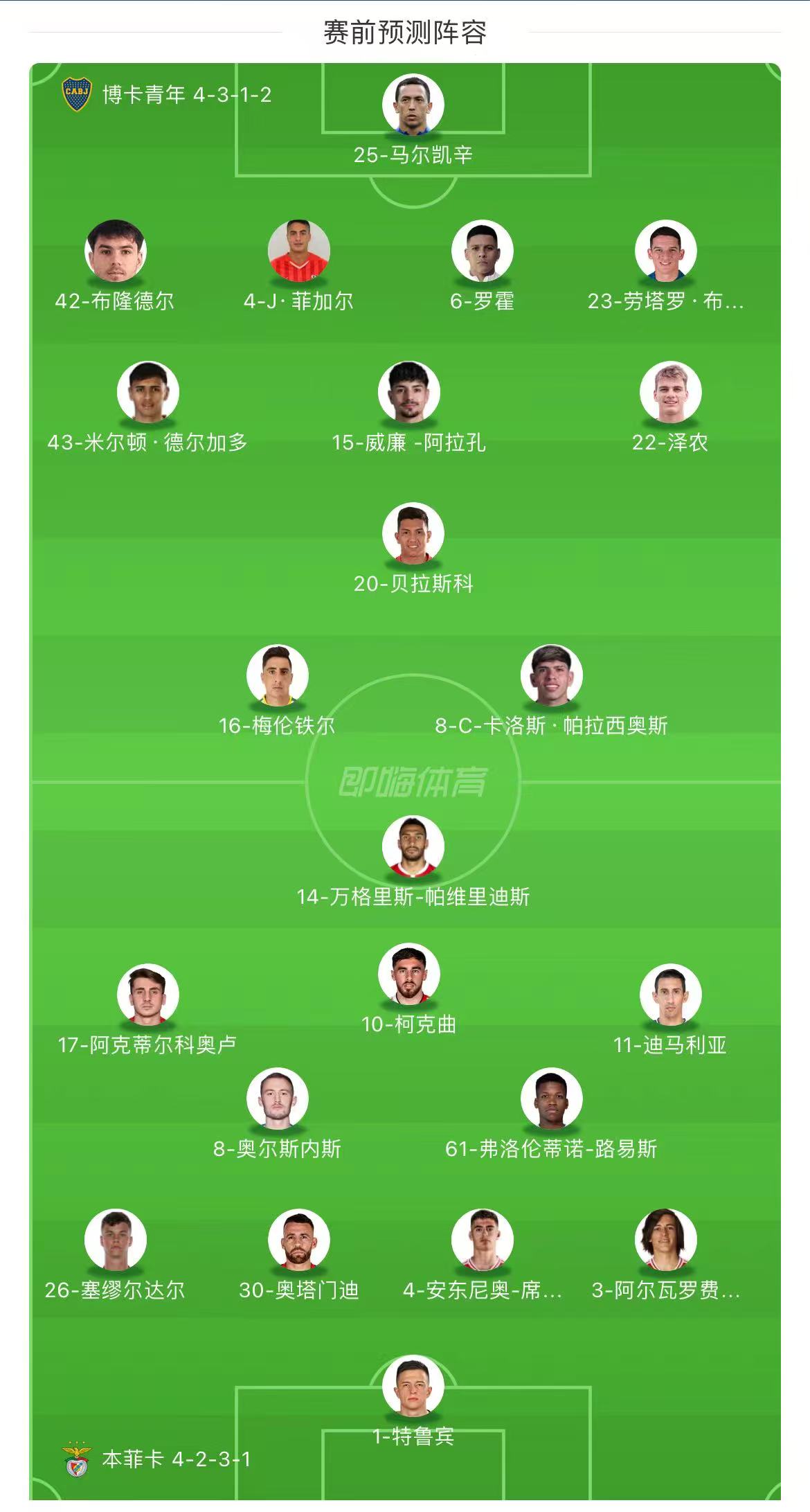 虽然本菲卡作为葡超一霸实力强劲,但博卡青年在南美洲也颇有声望。而且在博卡青年最近的十场联赛当中,他们总共仅仅丢失了五个球,可见其防守端非常稳固。加之本场双方直接对话,对于争夺小组第二个出线名额至关重要,双方战术必定以稳妥为主。