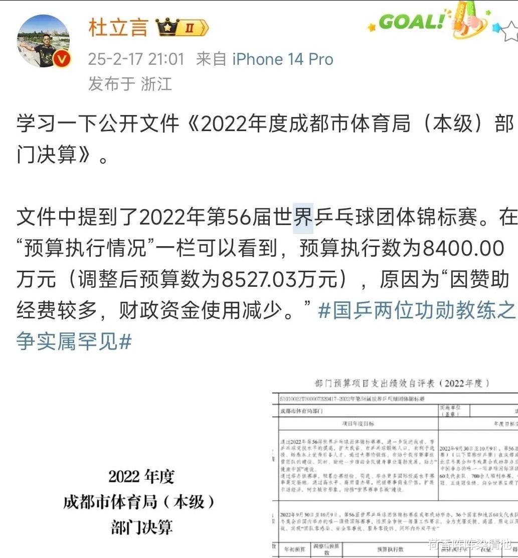 成都举办了世界乒乓球团体锦标赛。然而,这场备受瞩目的赛事却因为一个数字而蒙上阴影:8527万元的巨额预算。这个数字,远超此前公布的8400万元,并在著名体育记者杜立言的爆料后,引发了公众的强烈质疑和广泛的社会关注。这不仅仅是一场体育赛事的预算问题,更是关乎体育管理体制的透明度、资金使用的合理性以及反腐倡廉的深刻命题。本文将深入探讨成都世乒赛8527万预算事件,分析其背后的争议,并探讨未来如何避免类似事件的发生。