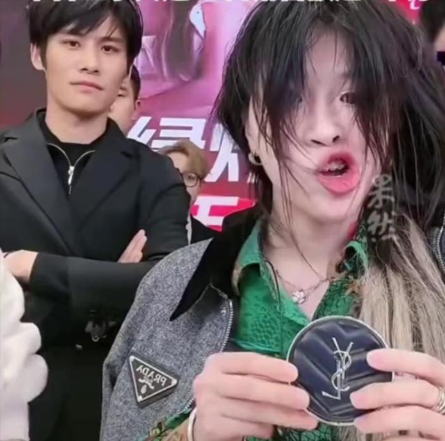 比如在带货 YSL 美妆产品时,形象邋遢、表情狰狞,